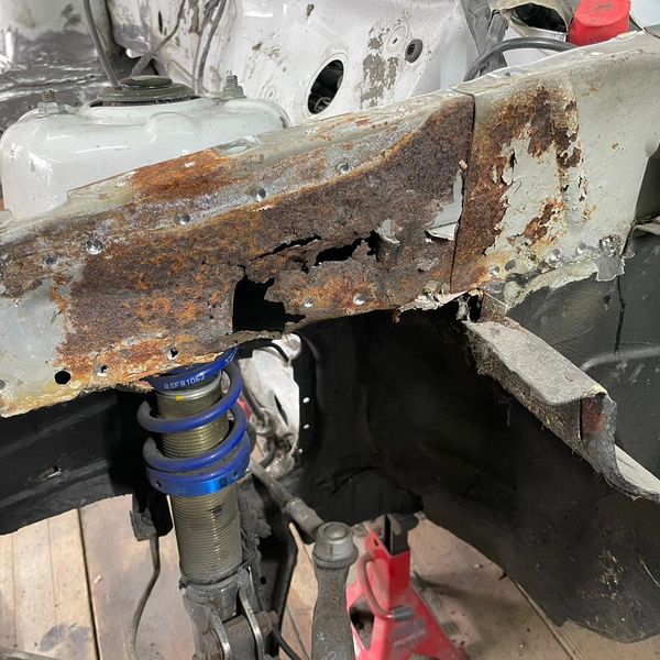 Het volgende wat zou gaan gebeuren aan de Corsa is het verwijderen van de verroeste delen in de motorruimte en de zelf gelastte delen die Michel en zijn vader in 2023 zelf hebben geïmproviseerd. Bij het kaalmaken van de motorruimte en het wegzagen van het ingedeukte en vervormde front, kwamen verschillende extra delen tevoorschijn waar de roest al aardig had huis gehouden. Verschillende plekken waren al doorgerot en hadden de nodige aandacht nodig. Zo was de complete accu bak door gerot, aan beide kanten bij de veerschotels het plaatwerk doorgerot en/of verroest en achter de zijschermen de balken ook al op het randje van doorgerot/verroest en hadden de wielkasten ook aandacht nodig. Ik heb al ergere gevallen gezien en kan dit prima maken, het was alleen iets meer werk dan initieel gepland. Uiteraard was dat geen probleem voor Michel, zolang alles maar weer hard, stevig en veilig werd.